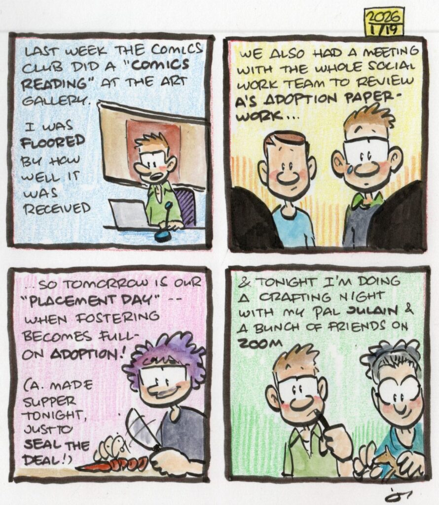 Next week the Club is doing a “comics reading” to mark the close of our exhibit at the Confederation Centre Art Gallery, and it chokes me up to think about how much I love and admire this group of people. And, MAN, do they make me laugh!
