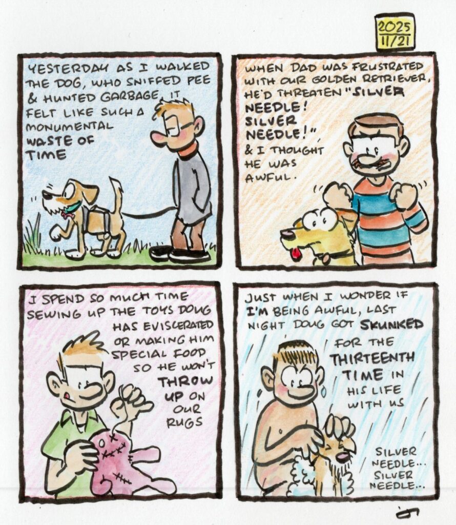 So if you were expecting a fourth-panel twist where I talk about the joy and love the dog brings, er, well, I’m not quite there at the moment. And I appreciate that this makes me look like a horrible goblin.