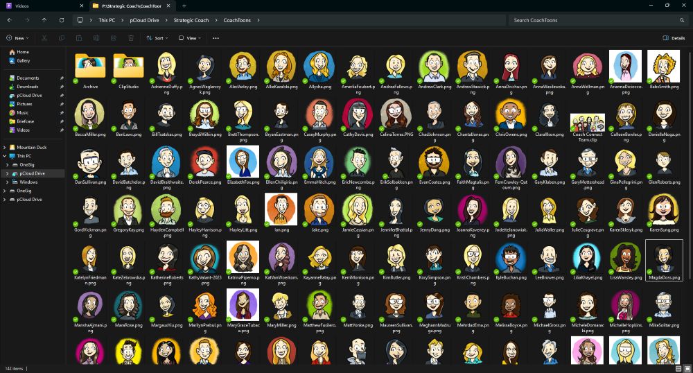 †When new hires at Strategic Coach make it through their three-month probation period, they get a custom cartoon to use in their socials. I’ve drawn nearly 250 of these (Holy liftin’!), and folks seem to like them – but it certainly wasn’t my idea to do this! “Here, new person. You don’t know me, but I’ve exaggerated your features in this drawing!”