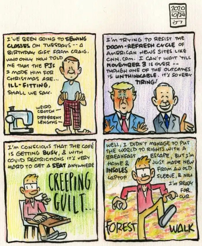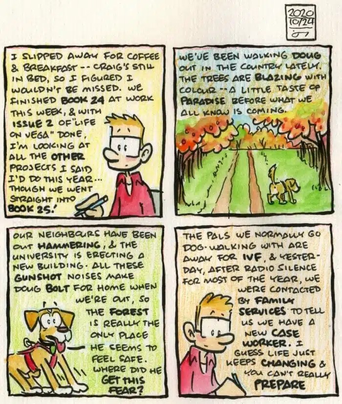 When we arrived home Saturday night from our afternoon tea outing, we were faced with a message from our dog-sitter — written on goofy 1970s cartoon paper with a host of animals in a tree, but worded with the creepiest internet conspiracy warnings about Bill Gates, vaccines, the fake pandemic… all that nonsensical internet garbage. It made me distraught, disappointed, upset to read such illogic from a real person, not just online.